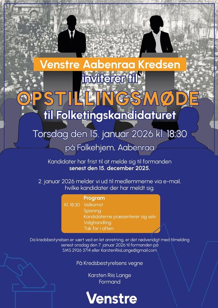 Venstre Aabenraa ser frem til Folketingsvalget. Valget finder sted den 24. marts 2026.
